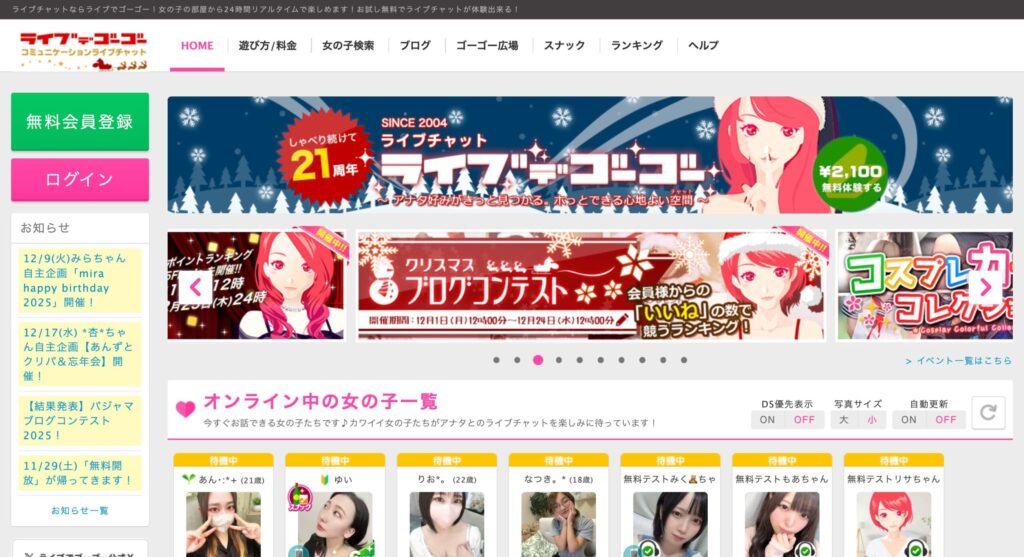 ライブでゴーゴーは、アクティブな女性が多く、すぐに会話を始めやすいのが特徴です。 テンポよく楽しみたい人や、待ち時間を減らしたい人に向いています。