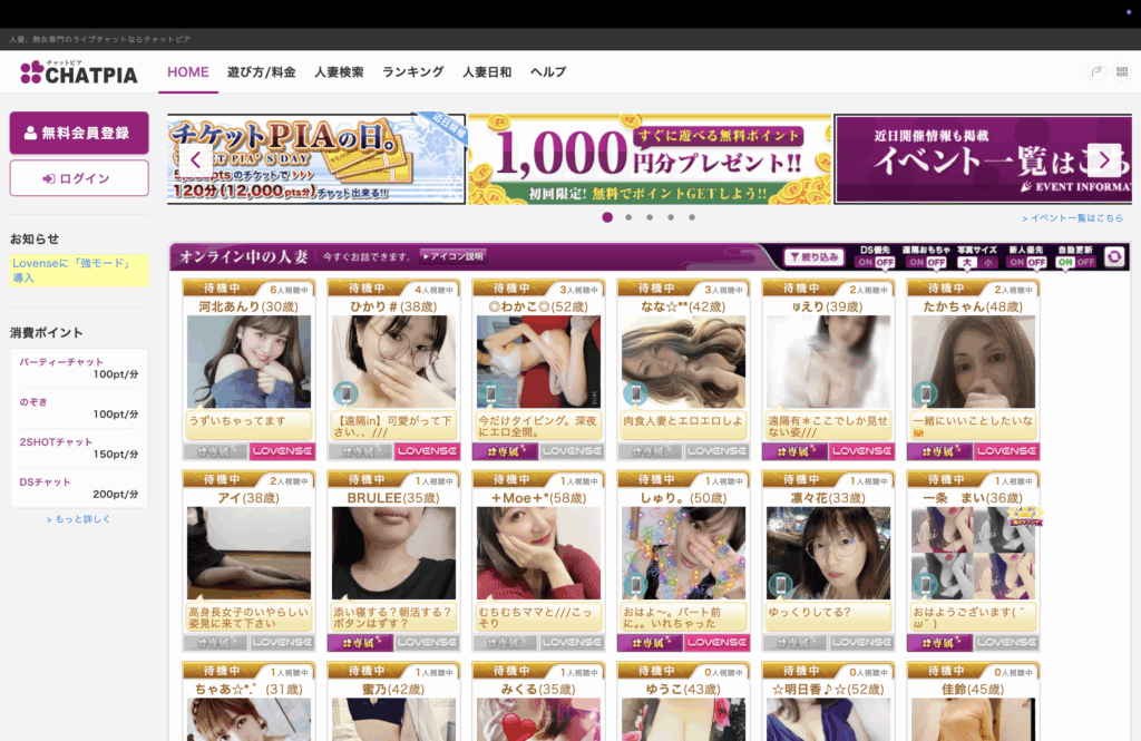 | エンジェルライブ | 運営歴が長く老舗の安心感。幅広い年代の女性が在籍。 | ポイント制 | 必須 |