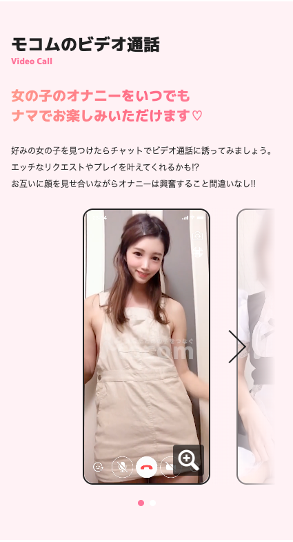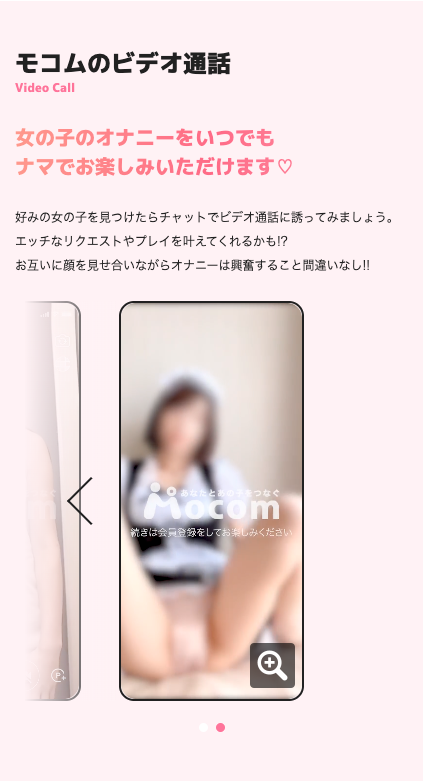 モコムは、普段は学生・OL・モデル・風俗嬢として生活している全国の様々なタイプの女の子とビデオ通話・音声通話・チャットを楽しめるスマホ専用のビデオチャットサービスです(引用元: https://mocom.tv/)